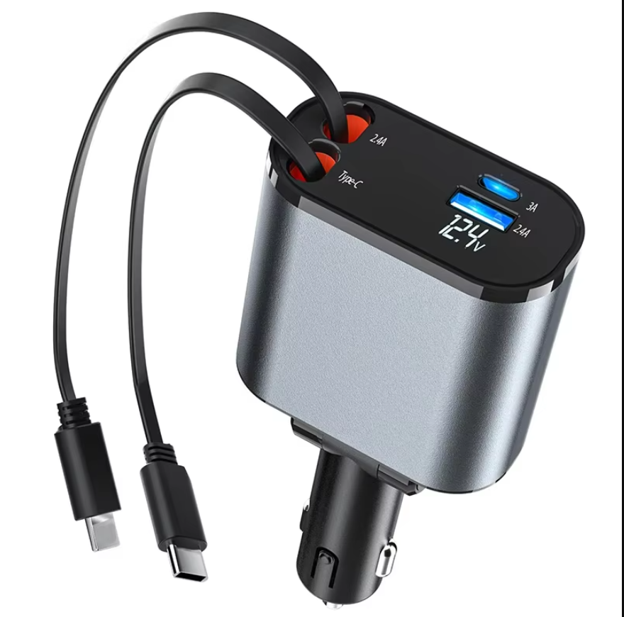 ?Hızlı Şarj ve Voltaj Göstergesi?: Araç şarj cihazımız, biri iOS kablosu, diğeri Android Type C kablosu için olmak üzere 2 geri çekilebilir kabloya sahiptir. Daha fazla güç uzatması için 1 USB A ve 1 PD portu. Hızlı şarj teknolojisiyle donatılmış bu araç şarj cihazı, cihazlarınıza hızlı ve verimli bir şarj sağlayarak zamandan tasarruf etmenizi sağlar. Ayrıca bu hızlı araç şarj cihazı, mevcut voltajı gerçek zamanlı olarak izleyebilen ve daha güvenli bir şekilde şarj etmenizi sağlayan bir voltaj göstergesine de sahiptir.