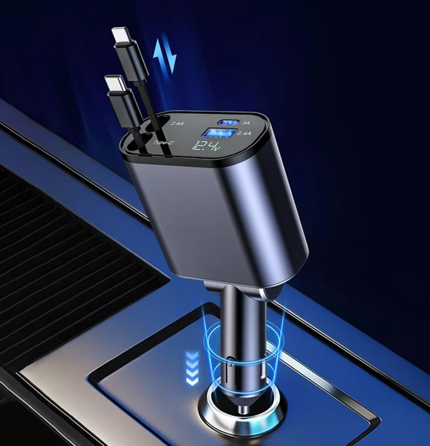?4'ü 1 Arada Geri Çekilebilir Telefon Araç Şarj Cihazı?: 4'ü 1 Arada Geri Çekilebilir Araç Şarj Cihazımızın kompakt boyutu, aracınızda minimum yer kaplamasını sağlar. Aynı anda dört cihaza kadar şarj edin ve gövde açısını esnek bir şekilde ayarlayarak destekleyin. Geri Çekilebilir Telefon Araç Şarj Cihazı, şarj kablolarınızı düzenli ve kullanıma hazır tutan, akıllıca tasarlanmış, dolaşmayan geri çekilebilir kablo tasarımına sahiptir. Geri çekilebilir kablo yaklaşık 80 cm'ye kadar çekilebilir ve kullanılmadığında otomatik olarak geri çekilebilir.