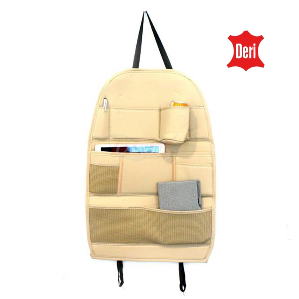Araba Koltuk Arkası Eşya Düzenleyici Oto Organizer Bej Deri 1. Sınıf