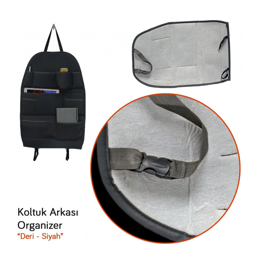 Koltuk Arkası Organizer Çanta Deri Siyah