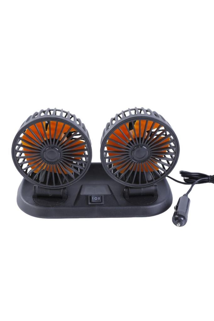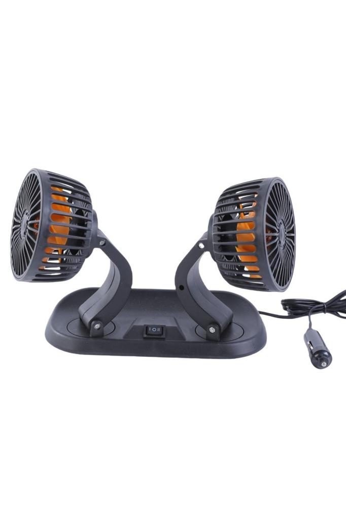 Araç Içi Çift Başlıklı 360 Derece Dönebilen Araç Fanı Araç Içi Vantilatör Serinletici 12V