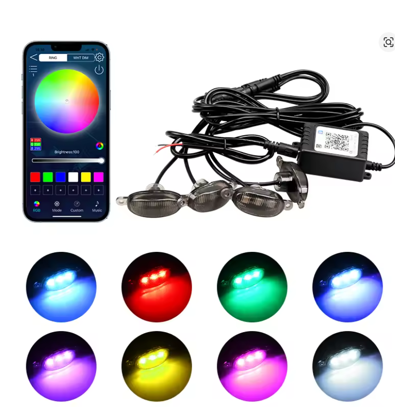 RGB Araba Ön Izgara Aydınlatma APP Kontrolü 12 V Led Izgara Izgara Işık Değiştirme Off-road Araçları Jeep SUV Dekoratif Sinyal Lambası
