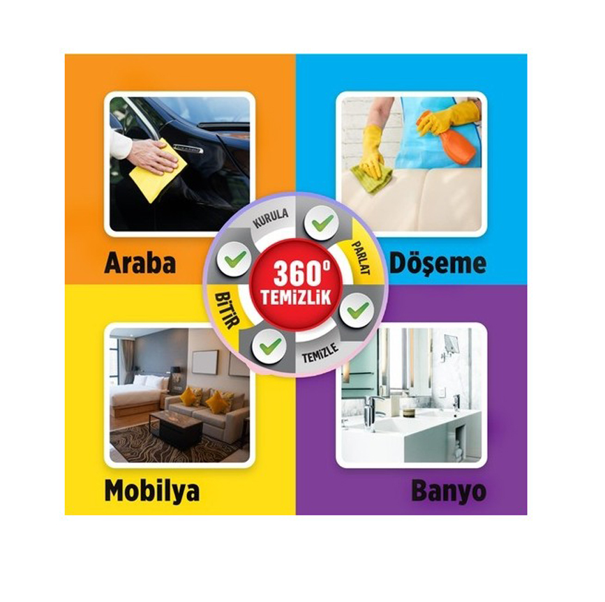 Sahip olduğu özel dokusu sayesinde cam gibi parlak yüzeylerin toz ve leke bırakmadan kalıcı temizlik sağlar. ;